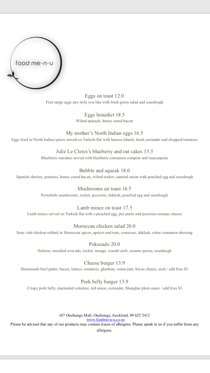 Welcome to Food me-n-u café, a delightful spot nestled at 187 Onehunga Mall, Auckland. This charming café is quickly becoming a local favorite, offering a variety of mouth-watering options that cater to all tastes. The menu is a medley of delicious choices, including sides like crispy Hashbrown and savory Bacon, each at a reasonable price.